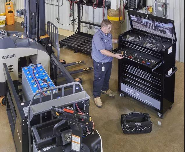 因此,电池液位需要经常检查,确保每个电池单体内的液位都处于正常水平。电池中水的消耗跟使用频率有关,仓库管理者应该根据叉车的使用强度,制定电池检查规范。