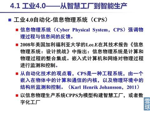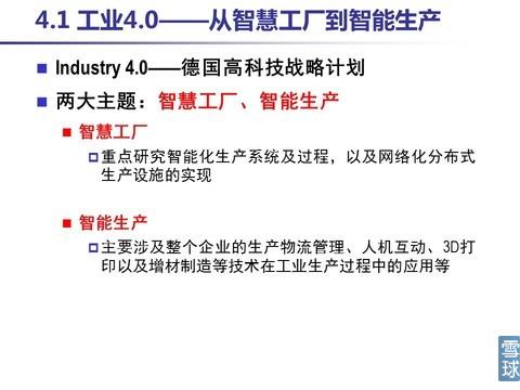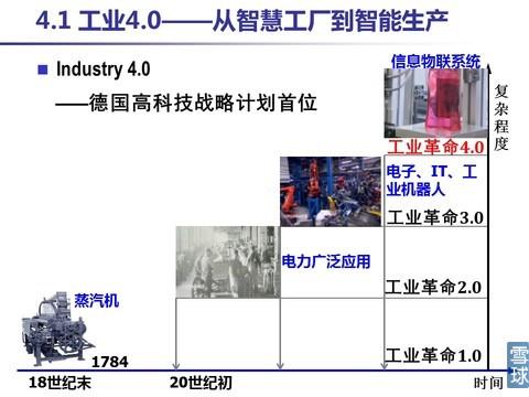 德国学术界和产业界认为,“工业4.0”概念即是以智能制造为主导的第四次工业革命,或革命性的生产方法。该战略旨在通过充分利用信息通讯技术和网络空间虚拟系统—信息物理系统(Cyber-Physical System)相结合的手段,将制造业向智能化转型。