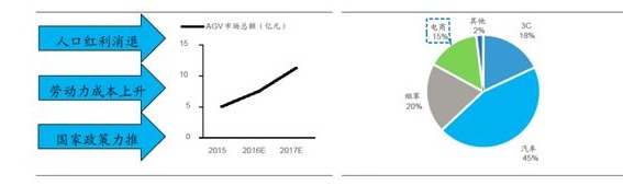 据测算,单个码头AGV小车的需求量约70台,中国主要的单个大型港口的总需求量保守估计在1500台,市场产值在5-10亿元人民币。截止2016年中国吞吐量过亿的大型港口就有十五个,如果按照每个大型港口平均500台(保守)AGV的需求量来算,就是7500台AGV产品,市场产值将是20-60亿人民币。这仅仅是吞吐过亿的十五大港口,中国货运码头港口总共超过500个。该市场需求将在较短时间内呈直线上升趋势,5年后逐步趋向稳定。可以预测,未来的几年,正因为巨大的经济和社会效益,港口应用将是AGV在中国富有前景的行业。